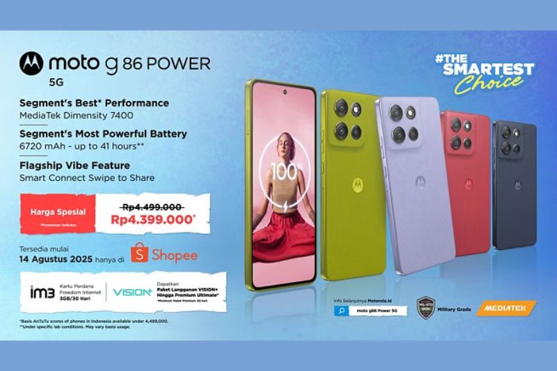 REL, JAKARTA - Motorola kembali membuat gebrakan di pasar smartphone Indonesia dengan meluncurkan Moto g86 Power 5G, perangkat terbaru di seri G yang memadukan daya, desain, dan teknologi mutakhir.