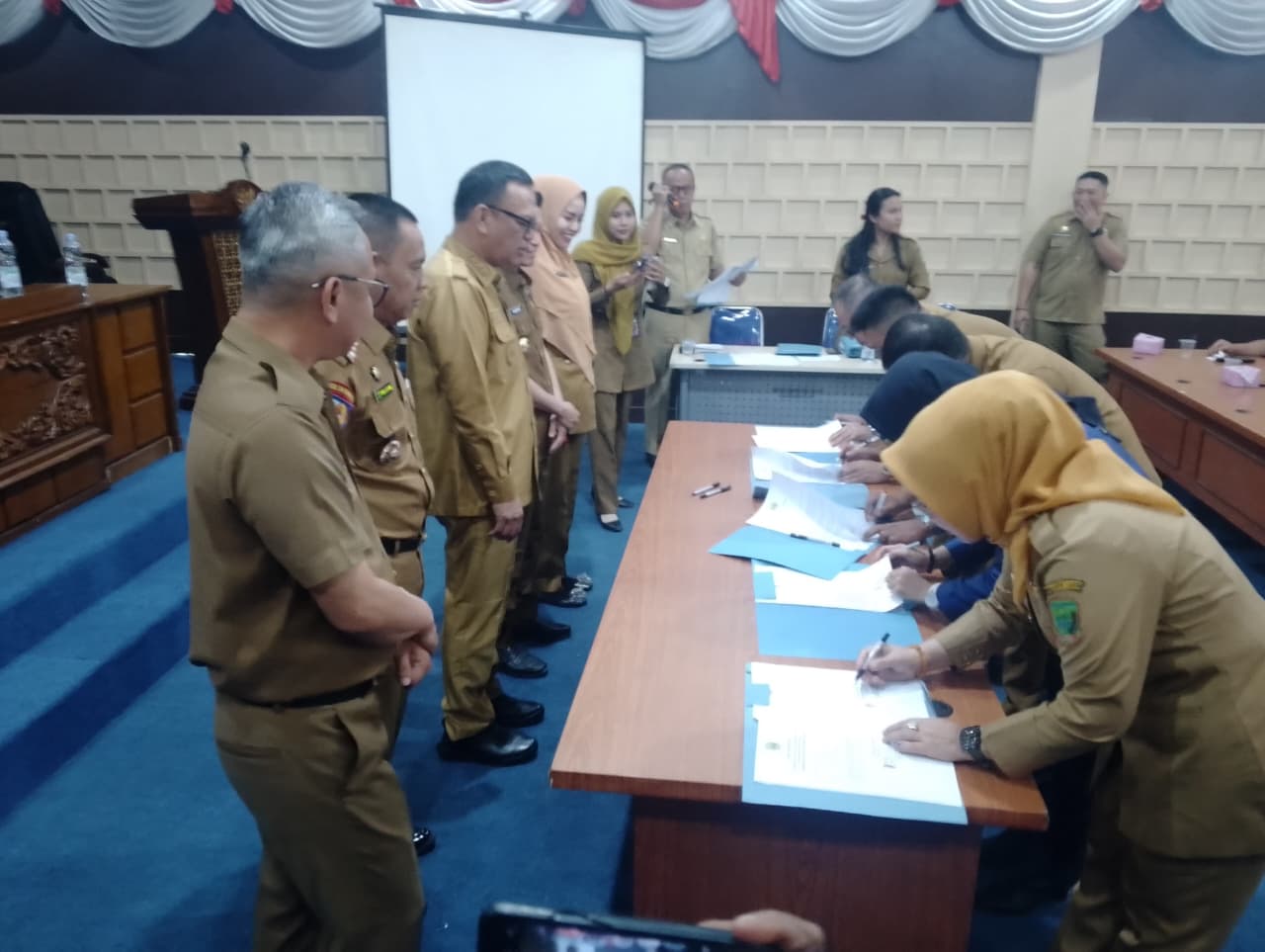 PEMERINTAH Kabupaten Empat Lawang menggelar kegiatan penandatanganan fakta integritas dan surat pernyataan bagi pejabat tinggi pratama serta administrator di lingkungan Pemkab Empat Lawang, Senin (1/9/2025).