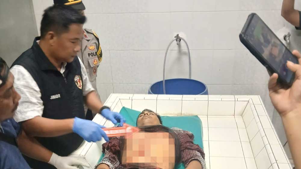 PERIKSA : Korban Riski Saputra saat diperiksa Tim Inafis Polrestabes Palembang di kamar jenazah RSUD Palembang Bari. Foto : Ist--