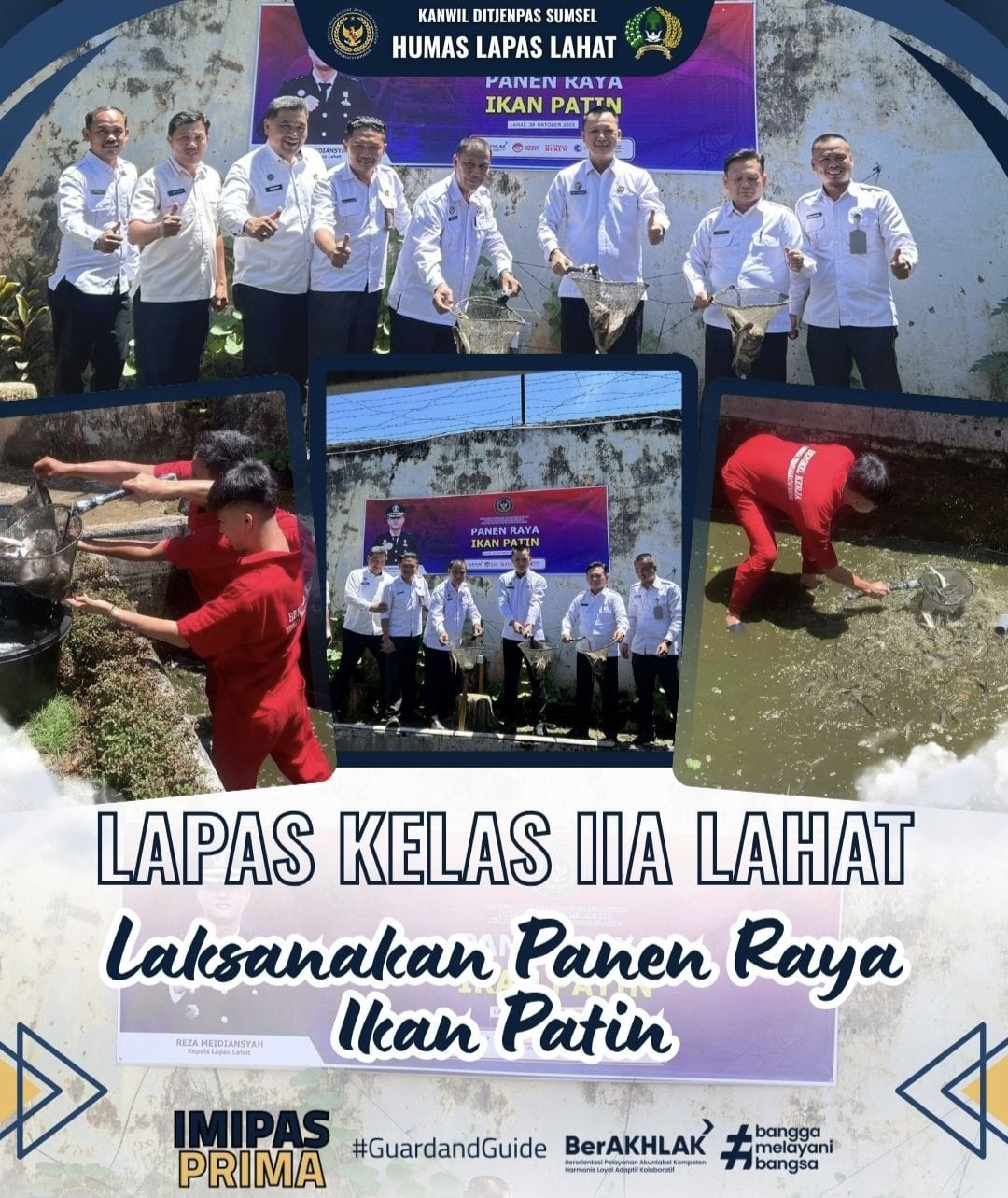 REL, Lahat — Dalam rangka memperkuat kemandirian warga binaan serta mendukung program ketahanan pangan nasional, Lembaga Pemasyarakatan (Lapas) Kelas IIA Lahat menggelar kegiatan Panen Raya Ikan Patin yang berlangsung di area kolam budidaya milik Lapas, Kamis (30/10).