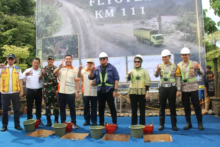 Gubernur Sumatera Selatan, Herman Deru, didampingi Wakil Bupati Lahat, Widia Ningsih, S.H., M.H., secara resmi melakukan peletakan batu pertama (groundbreaking) pembangunan Flyover Ruas KM 111 di Desa Tanjung Jambu, Kecamatan Merapi Timur.